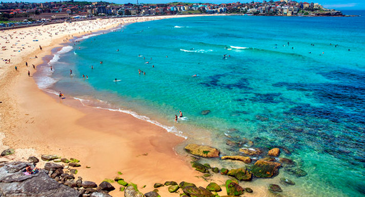 Bondi Beach es una de las playas más famosas del mundo a tan solo 15 minutos en coche desde el centro de Sídney.